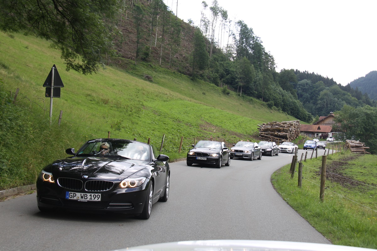 Mit offenem Verdeck setzte sich denn auch der Cabrio-Pulk in Bewegung. Sommer, Sonne, gute Laune, ein geliebtes und gepflegtes Auto – was will man mehr? Hans Rauh hatte wie von ihm gewohnt alles auf das Penibelste vorbereitet. Ein umfangreiches und detailliertes Roadbook – in dem sich selbst Bilder aller österreichischen Radaranlagen der Tour fanden – garantierte, dass alle BMWonTOUR-Teilnehmer in den Genuss aller Kurven und Panoramen auf den landschaftlich wunderbaren Straßen und Sträßchen kamen. Auf dem Weg nach Kitzbühel, durch einen Teil der Tiroler Alpen, zum 2369 Meter hohen Nationalparkplatz auf dem Großglockner hinauf und schließlich am Tegernsee entlang wieder in die schwäbische Heimat.