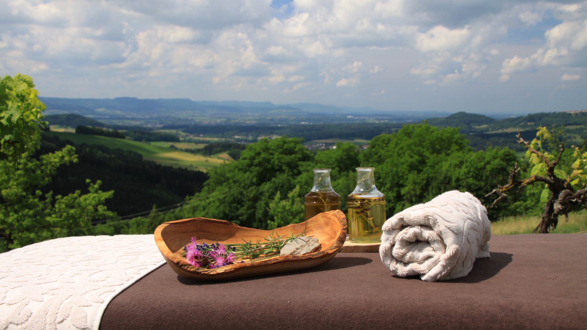 In ihrem neuen Domizil weit über dem Lärm und dem Schmutz der Stadt, empfängt sie die Ruhesuchenden. Der Behandlungsraum ist stilvoll eingerichtet, der Ausblick reicht bis zum Schwarzwald. Nach der Behandlung sind die Gäste herzlich auf eine Tasse Tee eingeladen, um auf den weichen Polstern der Hausbank den Blick in die Ferne schweifen zu lassen und zu träumen oder sich auf der Liege von der Sonne verwöhnen zu lassen.
