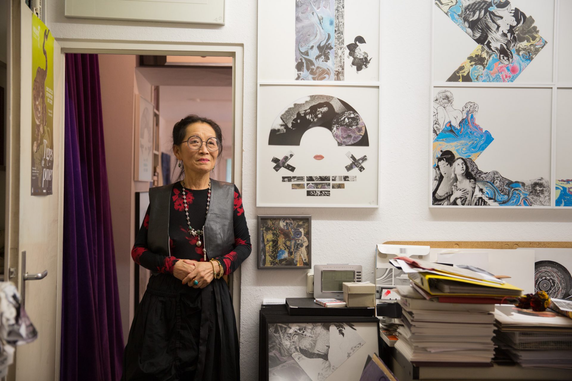 In ihrem ästhetischen Reich: YongSa Sommer vor einigen ihrer Werke in ihrem Atelier.
