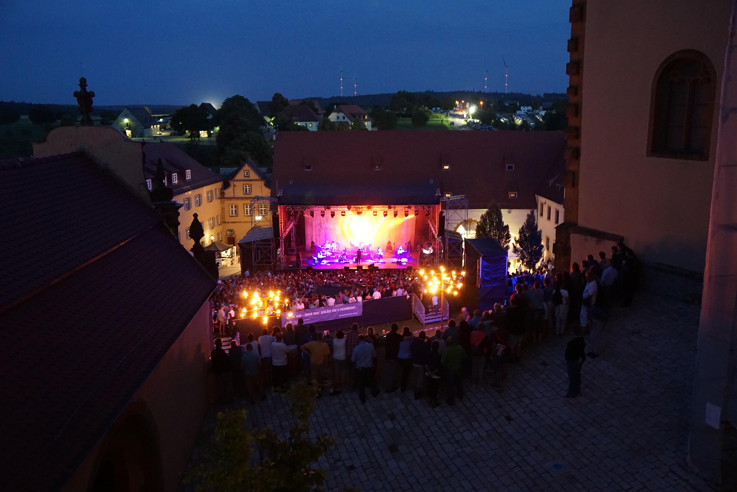 Rein theoretisch wäre es möglich, mehr Zuschauer auf das große Gelände zu lassen. Die Wiese neben der Lorenzkapelle ist ungenutzt, die Sitzplatztribüne könnte weiter nach oben ausgebaut werden. Eine Erhöhung der Kapazität ist für den Akademiedirektor allerdings keine Option. „Ich finde es furchtbar, bei einem Konzert wie eine Ölsardine eingeklemmt zu sein und das Geschehen auf der Bühne nur über Monitore verfolgen zu können. Neben der Kulisse macht der intime Charakter auf dem Schloss doch den besonderen Charme des Festivals aus. Darauf würde ich für keinen Gewinn der Welt verzichten, auch wenn wir das Geld als Stiftung, die sich zu 75% selbst finanzieren muss, gut gebrauchen könnten.“