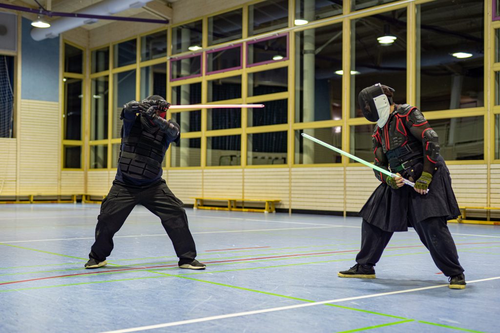 Pro Woche übt Mark Wamsler mindestens zwei Mal mit zehn bis fünfzehn Mitgliedern der „Stauferlöwen Saber One“ Duelle mit Lichtschwertern, wie sie in den „Star Wars“-Filmen zu sehen sind. Star Wars sei ein wichtiger Bestandteil seines Lebens. Bisher wurde das Lichtschwert, eine ikonische Waffe aus den Star Wars-Filmen, nur von Cosplayern verwendet. Doch neuerdings boomt der Spaß. Vom französischen Fechtverband wurde es im Februar 2019 als offizielle Sportart anerkannt. „Unsere Gruppe ist die einzige, die den US-Fachverband für Lichtschwerkampf in Deutschland vertritt“, erläutert Wamsler, der die Gruppe leitet. Dem Lehrer ist es wichtig zu betonen, dass Lichtschwertfechten eine Sportart ist. Und die würde er am liebsten auch in den Schulsport integrieren, so dass in Zukunft auch Schulen gegen Schulen antreten können. „Das Projekt hat sich aus einer Gruppierung des Staufersagavereins entwickelt, den Bühnen- und Schaukampf wolle man nicht nur Jugendlichen, sondern auch begeisterten Erwachsenen vermitteln“, so Reiner Götz, ein Gründungsmitglied der Gruppe.